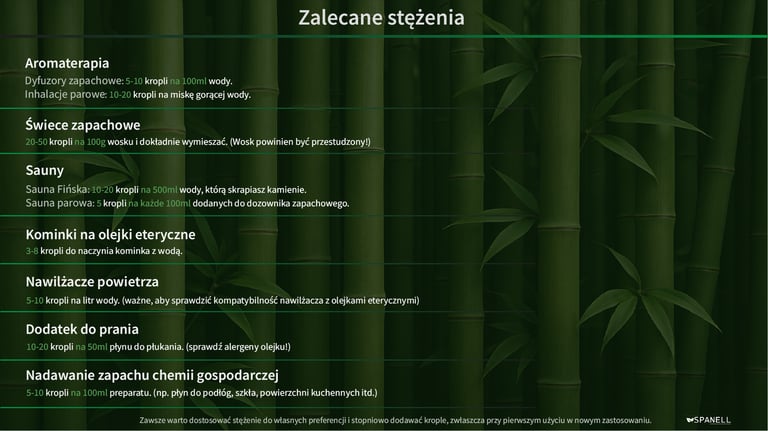 Warto dodać, że olejki eteryczne nie mieszają się dobrze z wodą, więc w takim zastosowaniu zwykle stosuje się emulgator lub alkohol jako nośnik. W przeciwnym razie mogą tworzyć się „plamy” oleju.